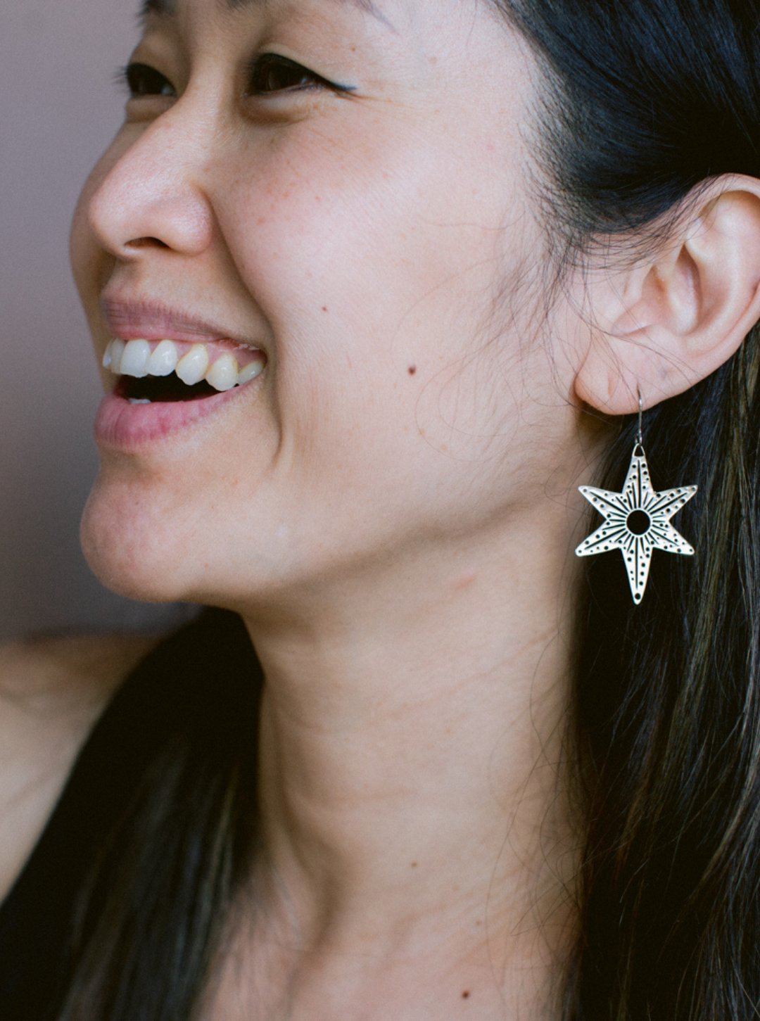 DENZ earrings are made from super thin, super lightweight stainless steel so you can make a statement all day long without that saggy lobe feeling.