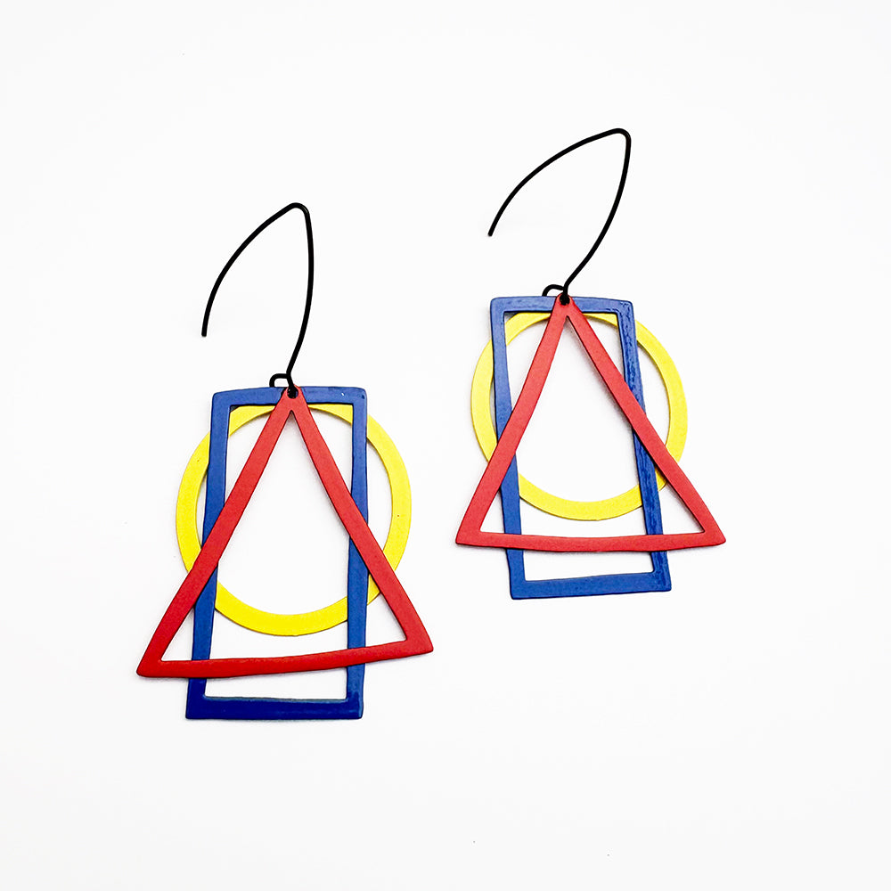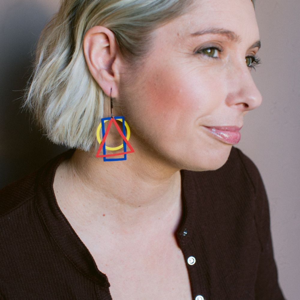 Bold, bright, and brilliantly simple, our Tri Shape Basic Shape Earrings are a playful celebration of colour and geometry. Featuring a trio of hand-drawn shapes (a yellow circle, blue rectangle, and red triangle) this design is a cheeky nod to primary school nostalgia with a bold, contemporary twist. Made from super thin recycled stainless steel, they’re super lightweight, hypoallergenic, and perfect for all-day wear.
