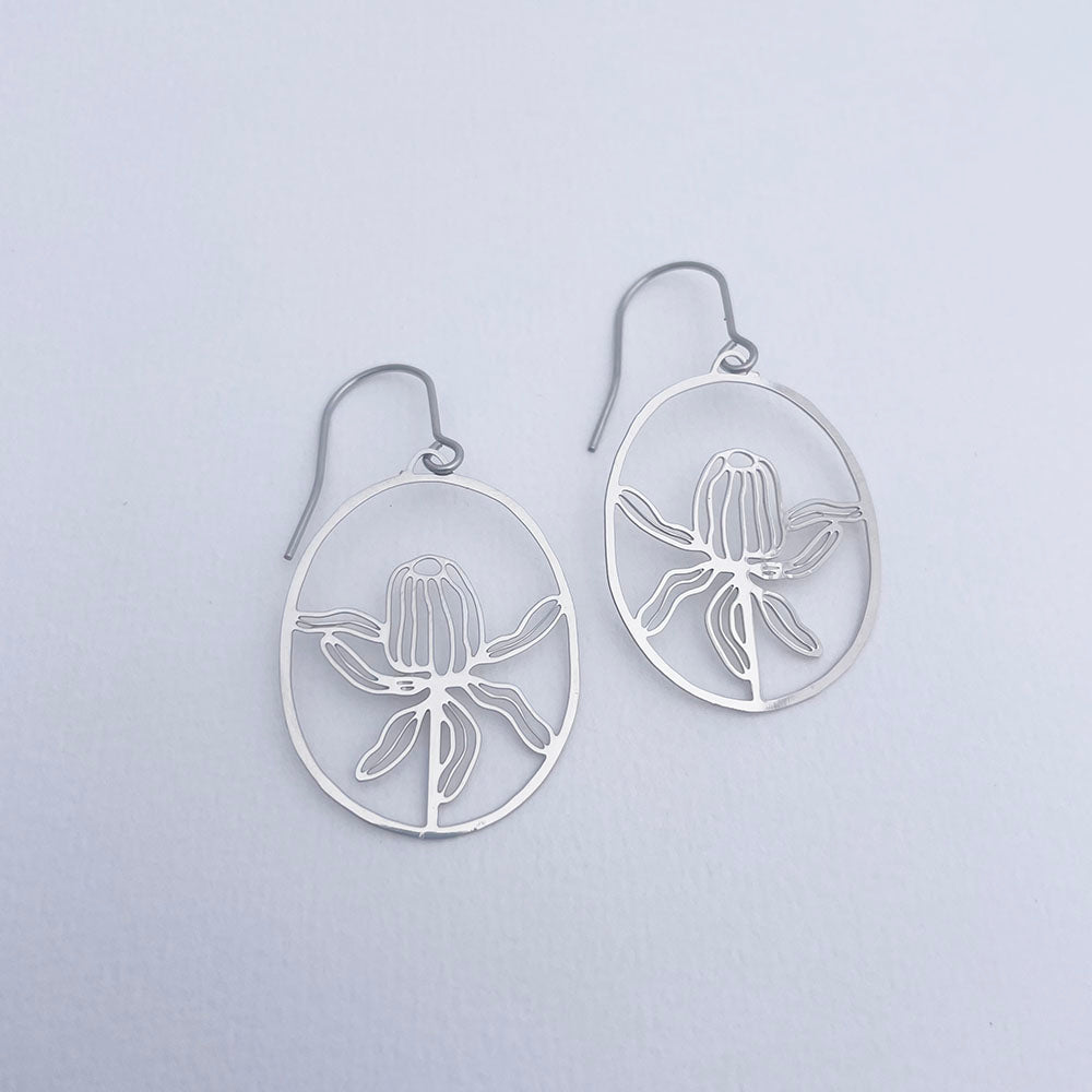 Celebrate native beauty with our Mini Banksia Flower Earrings in stunning silver. Featuring a hand-drawn design of the iconic Banksia bloom nestled within a delicate hoop, these earrings offer a subtle yet striking tribute to Australia’s unique flora. Crafted from super thin recycled stainless steel, they’re ultra-lightweight, hypoallergenic, and ideal for all-day wear.