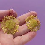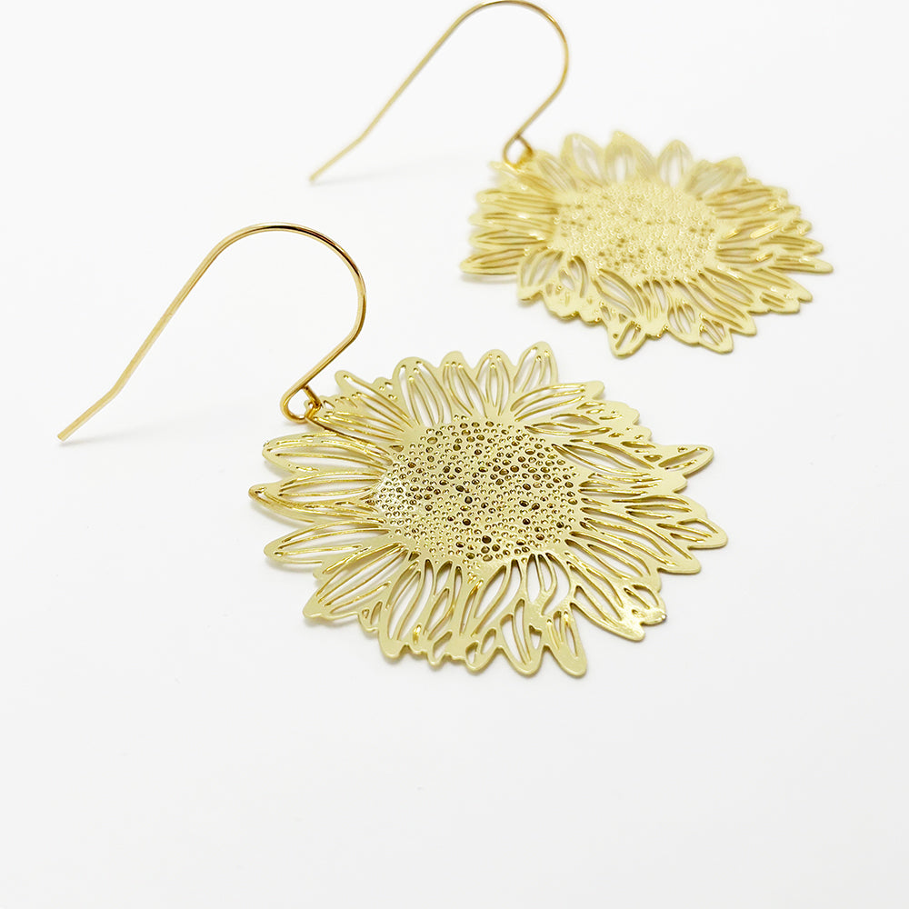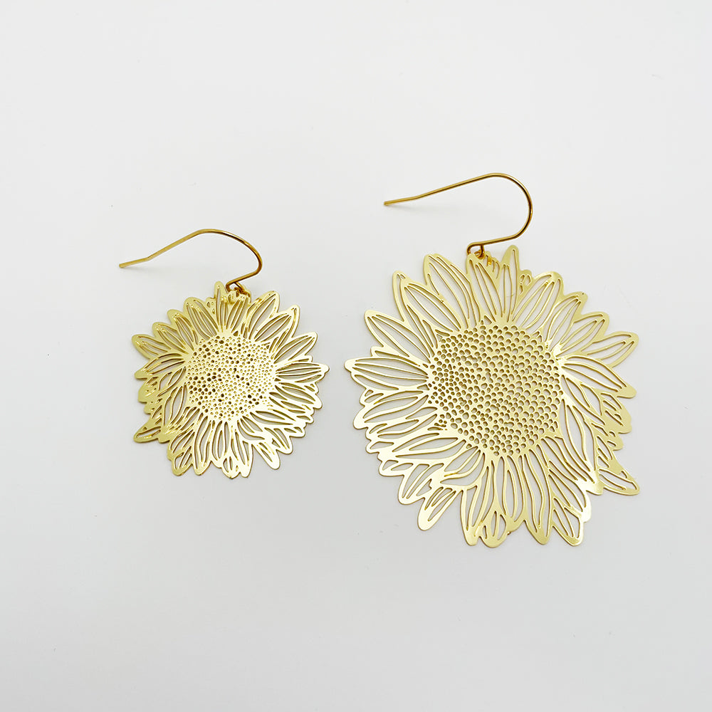Bring a little sunshine to your ears with our Mini Sunflower Earrings in radiant gold. Featuring a hand-drawn sunflower design with delicate cut-out detailing in the petals and centre, these tiny blooms are bursting with charm. Made from super thin recycled stainless steel, they’re ultra-lightweight, hypoallergenic, and perfect for adding a touch of joy to your everyday look.