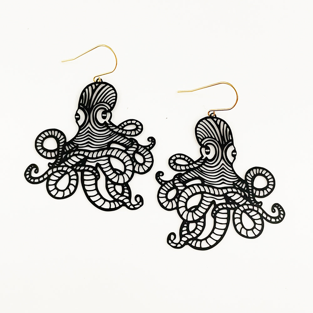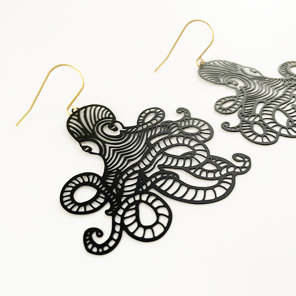 Octopus earrings in Black
