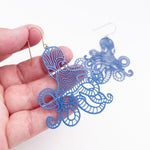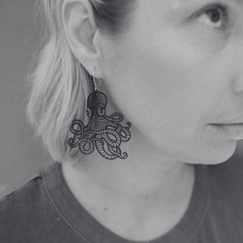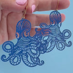 Dive into something a little wild with our Octopus Earrings in bold blue. Featuring a beautifully hand-drawn octopus with flowing tentacles and striking silhouette, these earrings are a tribute to one of the ocean’s most mysterious and intelligent creatures. Made from super thin recycled stainless steel, they’re ultra-lightweight, hypoallergenic, and designed for standout style without weighing you down.