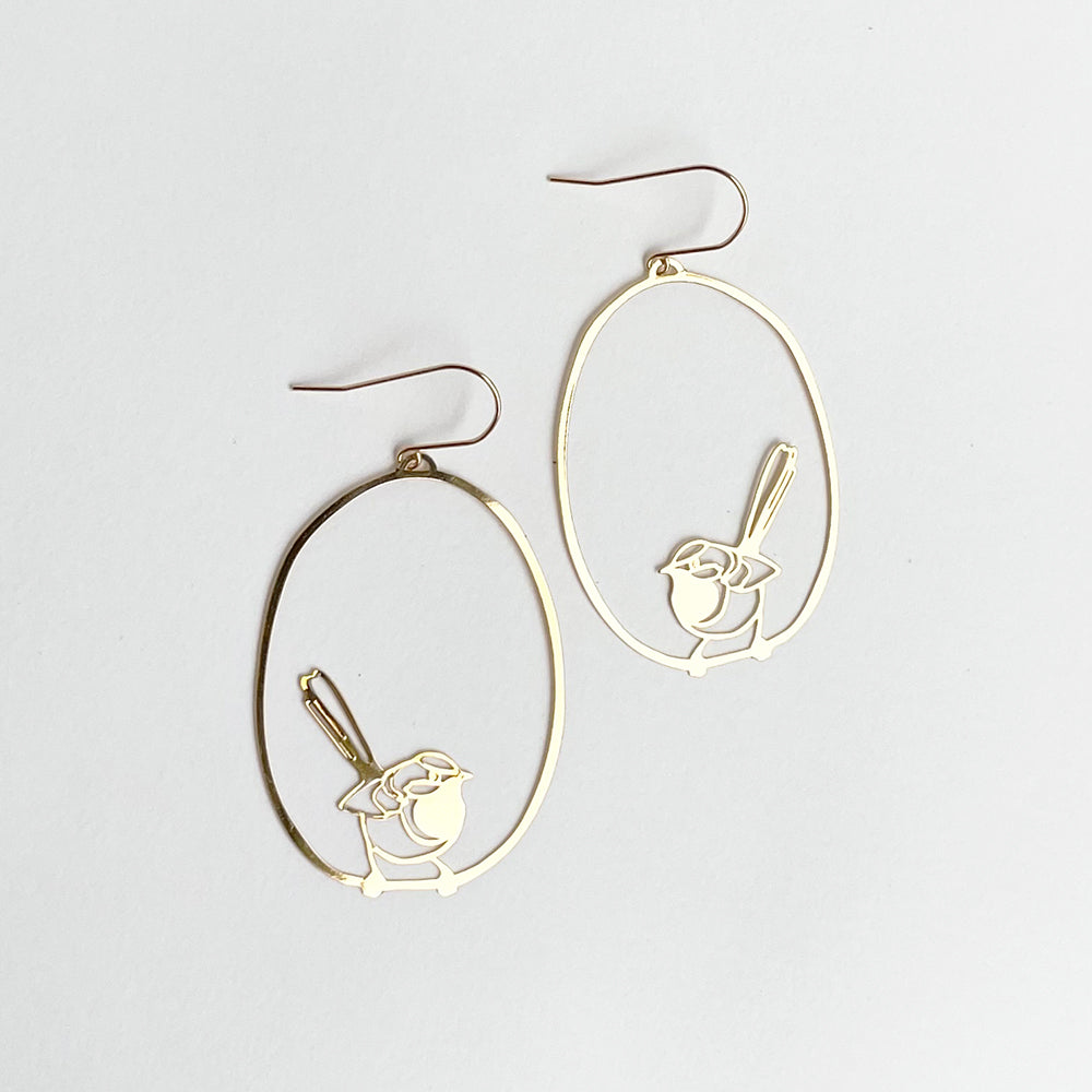 Delicate, delightful, and full of charm our Fairy Wren Earrings in gold are a tribute to one of Australia’s most adored little birds. Featuring a hand-drawn hoop design with a cheeky fairy wren perched sweetly on the base, these earrings capture the energy and elegance of this tiny feathered friend. Made from super thin recycled stainless steel, they’re ultra-lightweight and perfect for everyday wear.