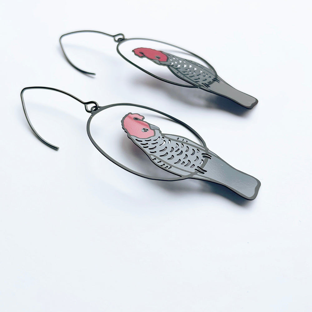 Gang Gang Cockatoo earrings in Black/Grey/Red