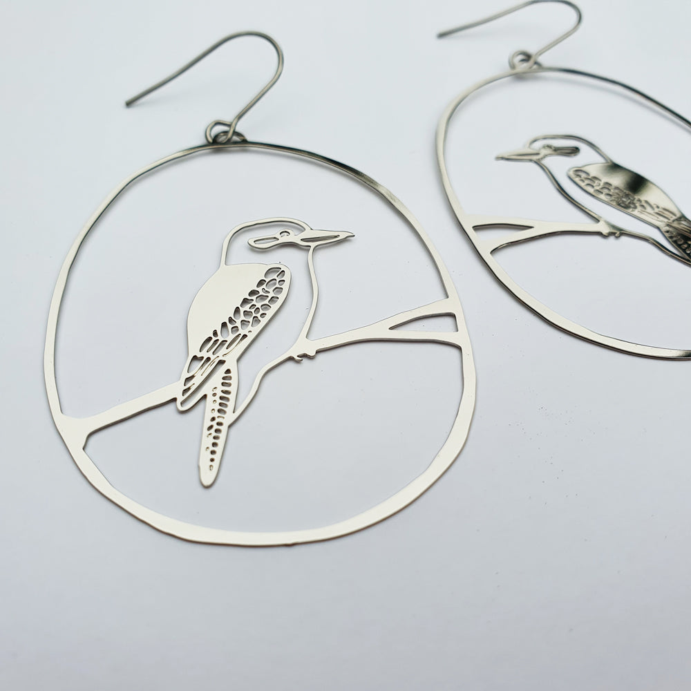 Bring a little laughter to your lobes with our Kookaburra Earrings in stunning silver. Featuring a hand-drawn hoop design with a kookaburra perched proudly on a branch across the centre, these earrings are a tribute to one of Australia's most iconic birds. Crafted from super thin recycled stainless steel, they’re ultra-lightweight and designed for all-day comfort.
