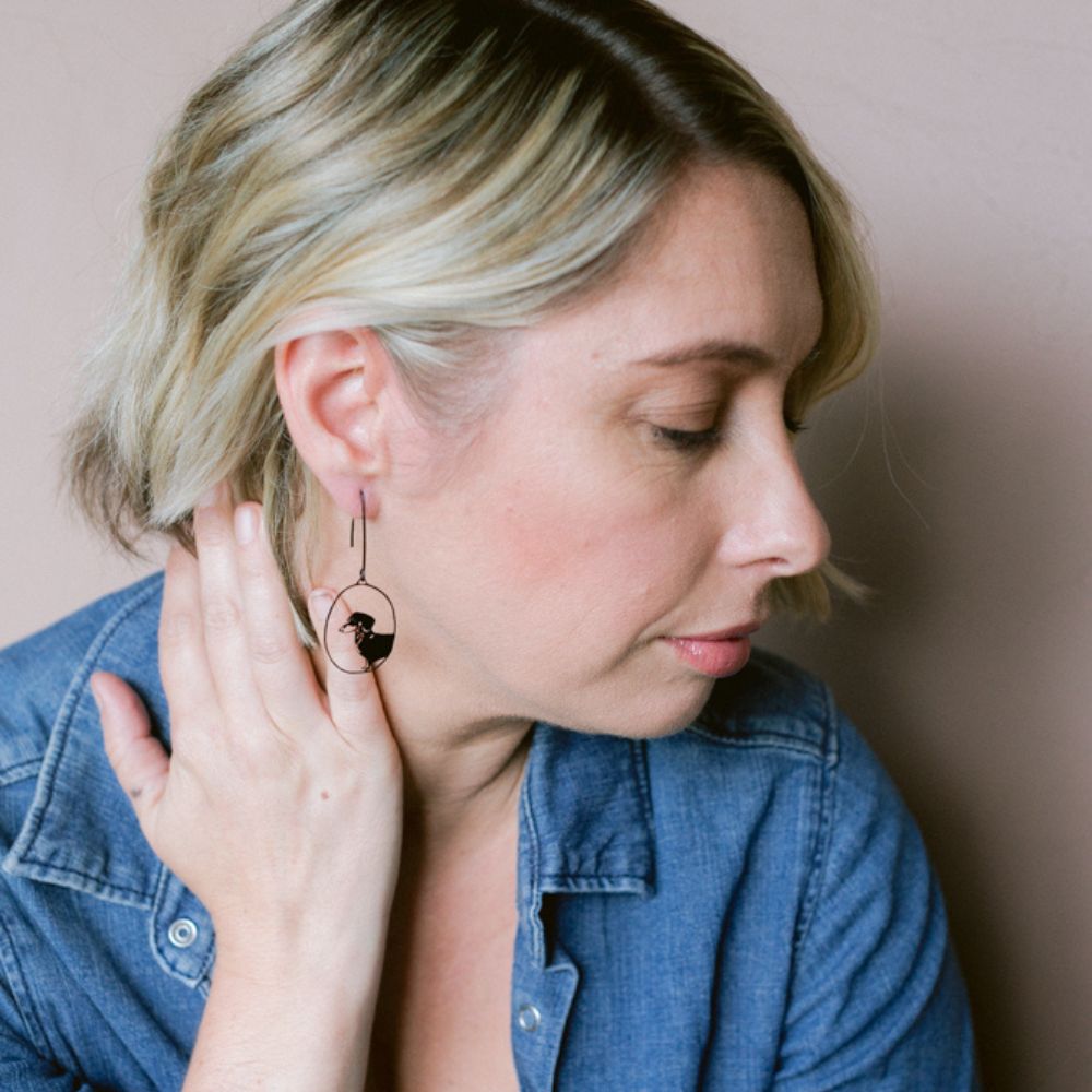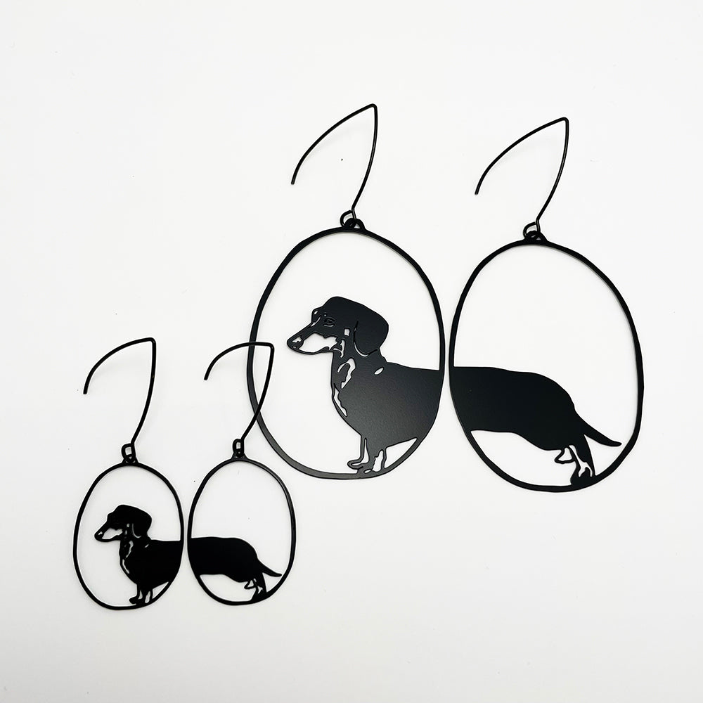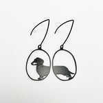 Say hello to the ultimate sausage dog statement, our Mini Dachshund Earrings in classic black are a playful mismatched pair featuring one half of a dachshund on each hoop. Put them together and voilà! A full-length pup, complete with all the charm and character of the beloved sausage dog. Made from super thin recycled stainless steel, these earrings are lightweight, hypoallergenic, and seriously cute.