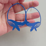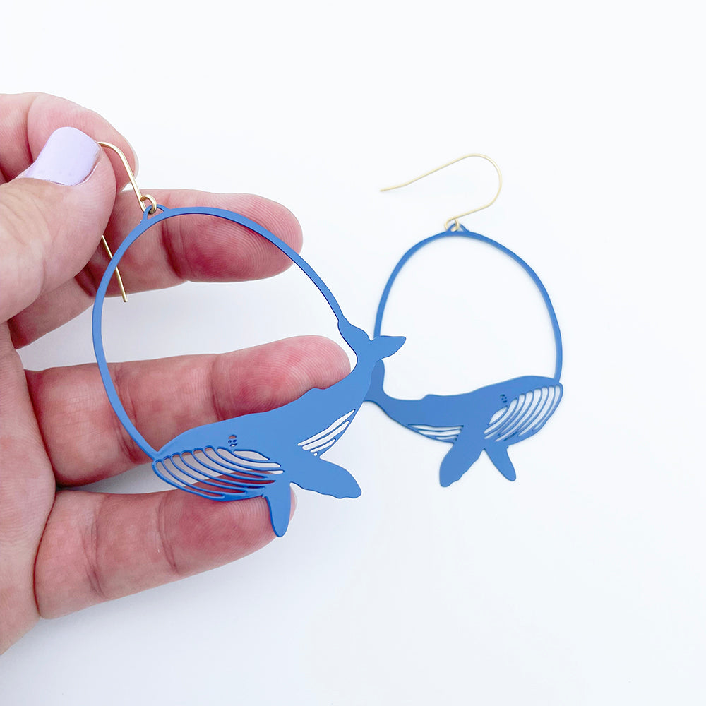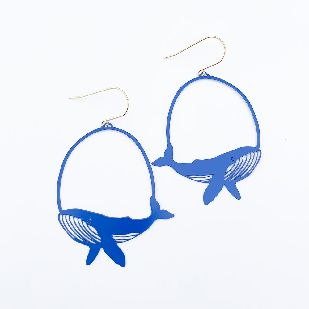 Make waves with our Whale Earrings in bold blue. Featuring a hand-drawn whale gracefully gliding along the base of a hoop, these earrings bring a sense of calm power and oceanic elegance to your everyday look. Crafted from super thin recycled stainless steel, they’re ultra-lightweight, hypoallergenic, and designed for effortless all-day wear.