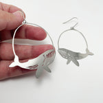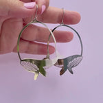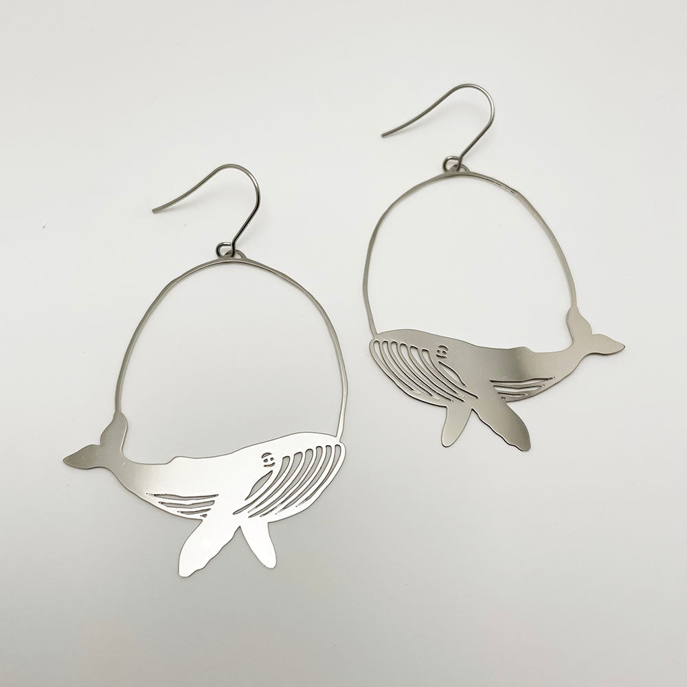Make waves with our Whale Earrings in stunning silver. Featuring a hand-drawn whale gracefully gliding along the base of a hoop, these earrings bring a sense of calm power and oceanic elegance to your everyday look. Crafted from super thin recycled stainless steel, they’re ultra-lightweight, hypoallergenic, and designed for effortless all-day wear.