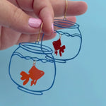 Make a splash with our Fishbowl Dangles, a playful take on a classic goldfish-in-a-bowl moment. These hand-drawn earrings feature a bold blue fishbowl outline with a cheeky little orange goldfish dangling right in the centre. Crafted from super thin recycled stainless steel, they’re lightweight, whimsical, and guaranteed to reel in compliments.