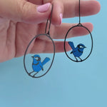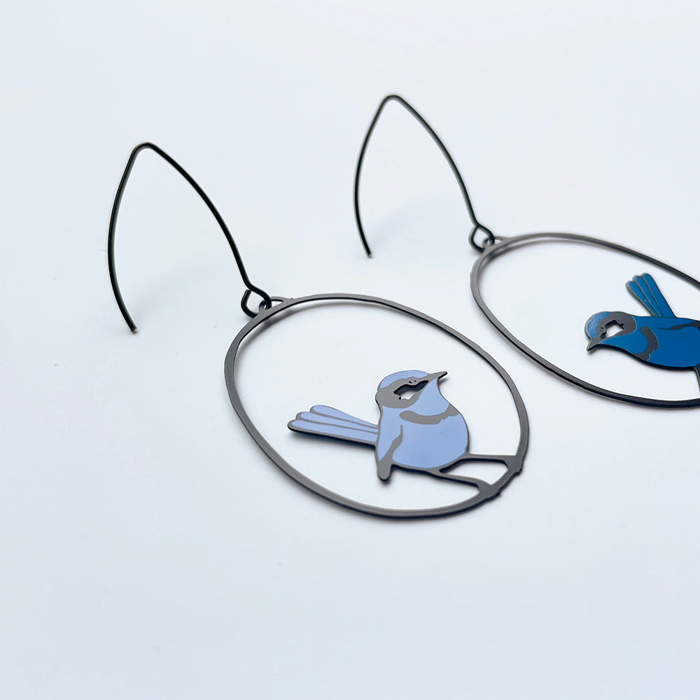 Delicate and full of personality our Midi Blue Wren Earrings capture the charm of one of Australia’s most beloved little birds. Perched gracefully on the base of a hand-drawn hoop, the wren features soft black detailing with striking blue highlights that mimic its vibrant plumage. Made from super thin recycled stainless steel, these earrings are as lightweight as they are eye-catching.