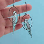 Bring a touch of Aussie charm to your jewellery collection with our Budgie Earrings in black, blue, and white. Featuring a hand-drawn budgie perched inside a hoop, these earrings celebrate one of Australia’s most beloved birds. Crafted from super thin recycled stainless steel, they’re lightweight, comfortable, and perfect for bird lovers.