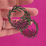 Fresh, festive, and full of Aussie flair, our Midi Grevillea Wreath Earrings put a native twist on the classic Christmas wreath. Crafted in a delicate round shape of hand-drawn grevillea leaves, the design is finished with a single deep pink blossom at the base. With green and black details to bring the foliage to life, these earrings strike the perfect balance between festive and wearable. Made from super thin recycled stainless steel, they’re lightweight, hypoallergenic, and easy to wear all day long.
