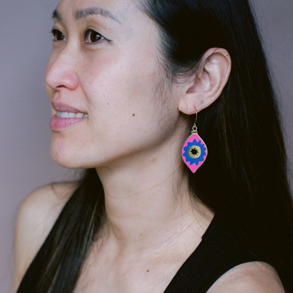 Vintage charm with a modern twist, our Midi Vintage Bauble Earrings bring retro festive vibes to your holiday style. Shaped like a classic tree bauble and finished in shimmering gold with pops of pink and navy, these earrings nod to the timeless decorations of Christmas past while keeping things fresh and fun. Made from super thin recycled stainless steel, they’re lightweight, hypoallergenic, and perfect for wearing all season long.