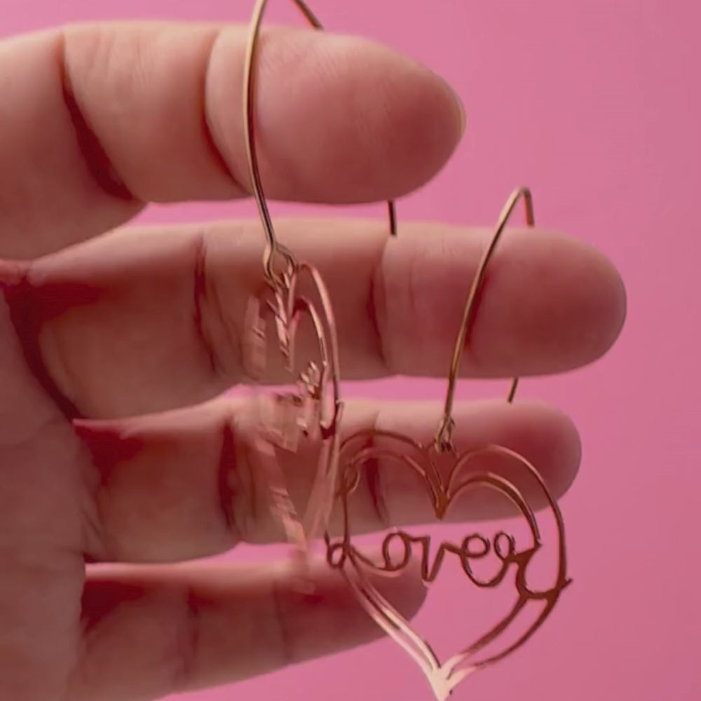 Sweet, confident, and full of heart, our Midi Lover Heart Earrings are made to celebrate friendship in the most wearable way. Featuring a delicately hand-drawn heart with the word Lover written in soft cursive across the front, this rose gold pair is a feel-good nod to telling your people exactly how much they mean to you. Crafted from super thin recycled stainless steel, they’re lightweight, comfy, and made for everyday love-sharing.
