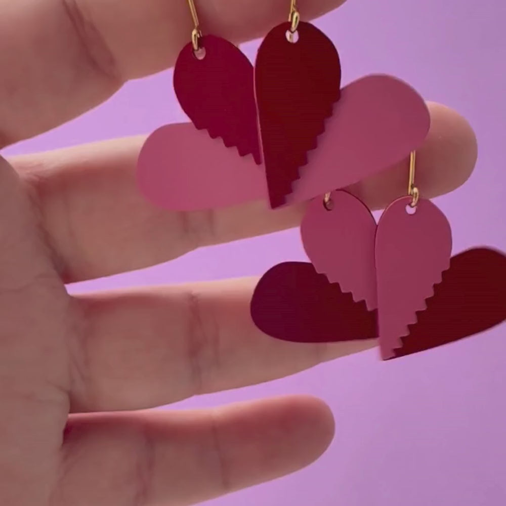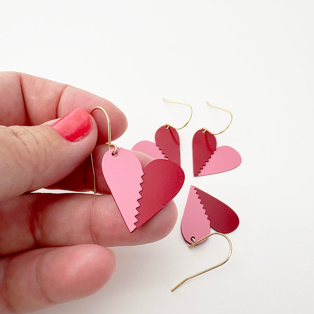 Mini BFF Heart set of earrings in Pink/Red