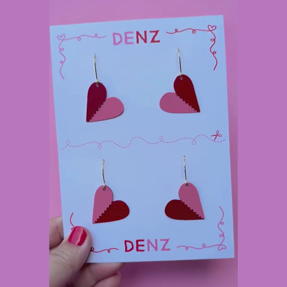 Sweet, sentimental, and made to share, our Mini BFF Heart Set of Earrings in Pink & Red is all about celebrating your ride-or-die. This special set features two mini heart earrings presented on a custom BFF card, designed to be cut in half so you can keep one and gift the other to your bestie. One pair features a pink heart with a red cut-out detail, while the other flips the colours, red with a pink cut-out, perfectly mismatched, just like the best friendships.