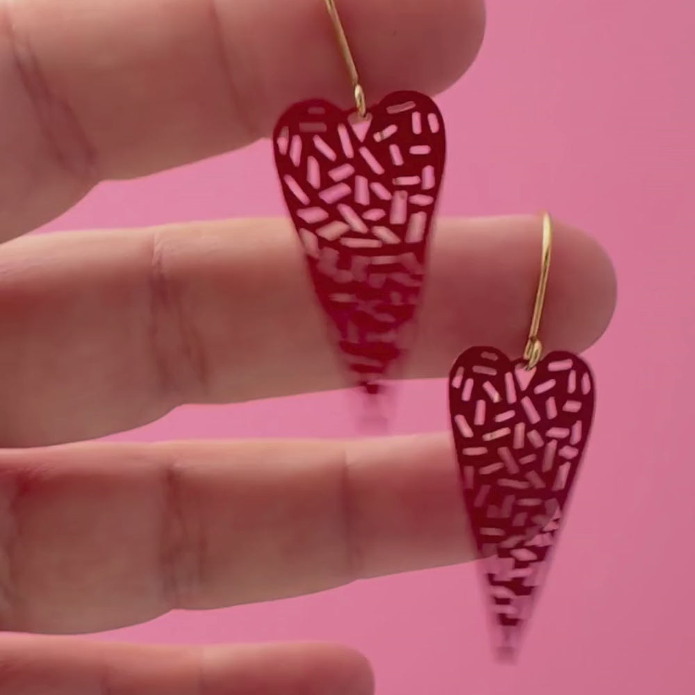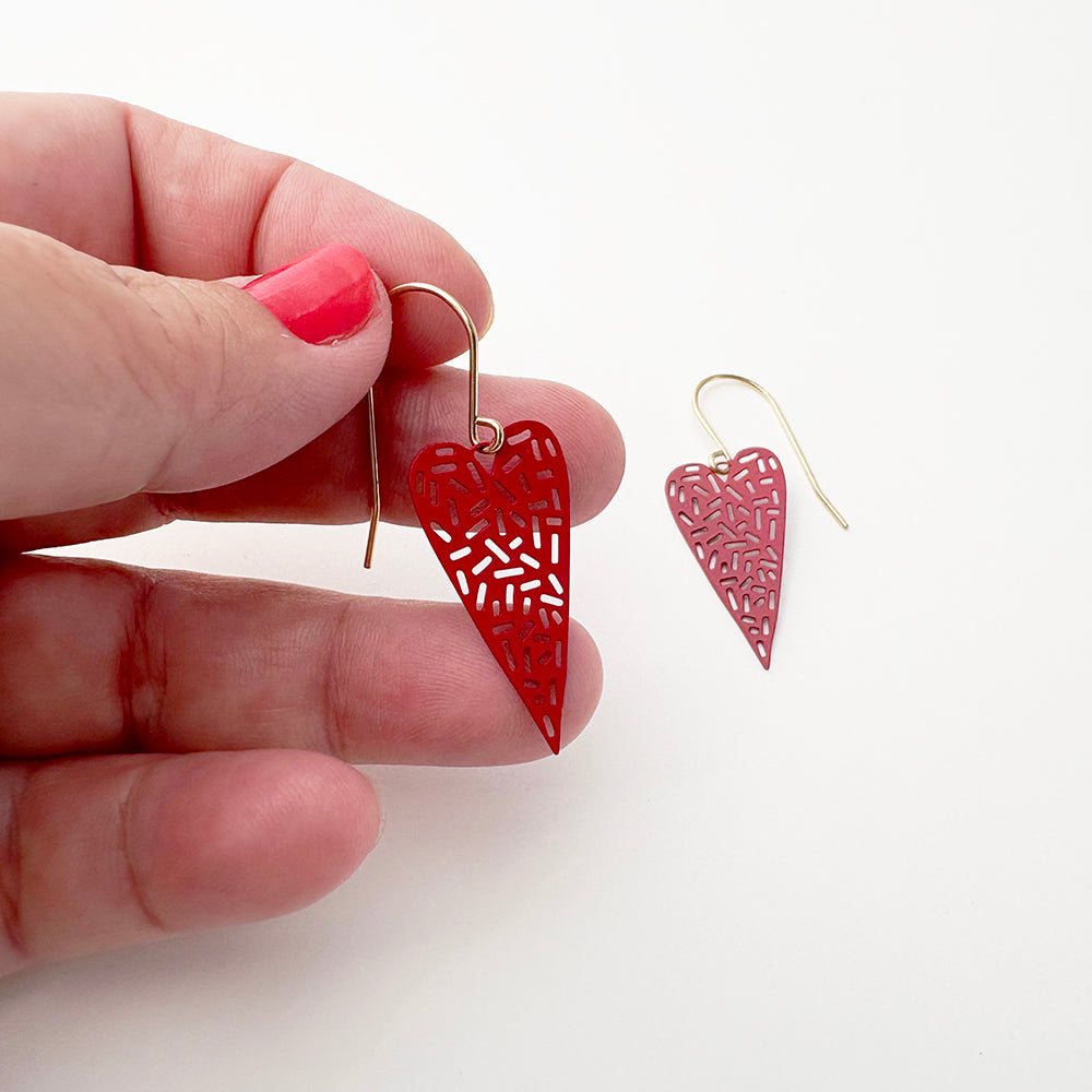 Mini Dashy Heart earrings in Red