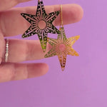 Shine bright this festive season with our Midi Christmas Star Earrings. Designed in a classic star silhouette with delicate cut-out sparkles, these beauties bring just the right amount of festive glow to your look. Made from super thin recycled stainless steel in shimmering gold, they’re lightweight, hypoallergenic, and perfect for celebrating in comfort and style.