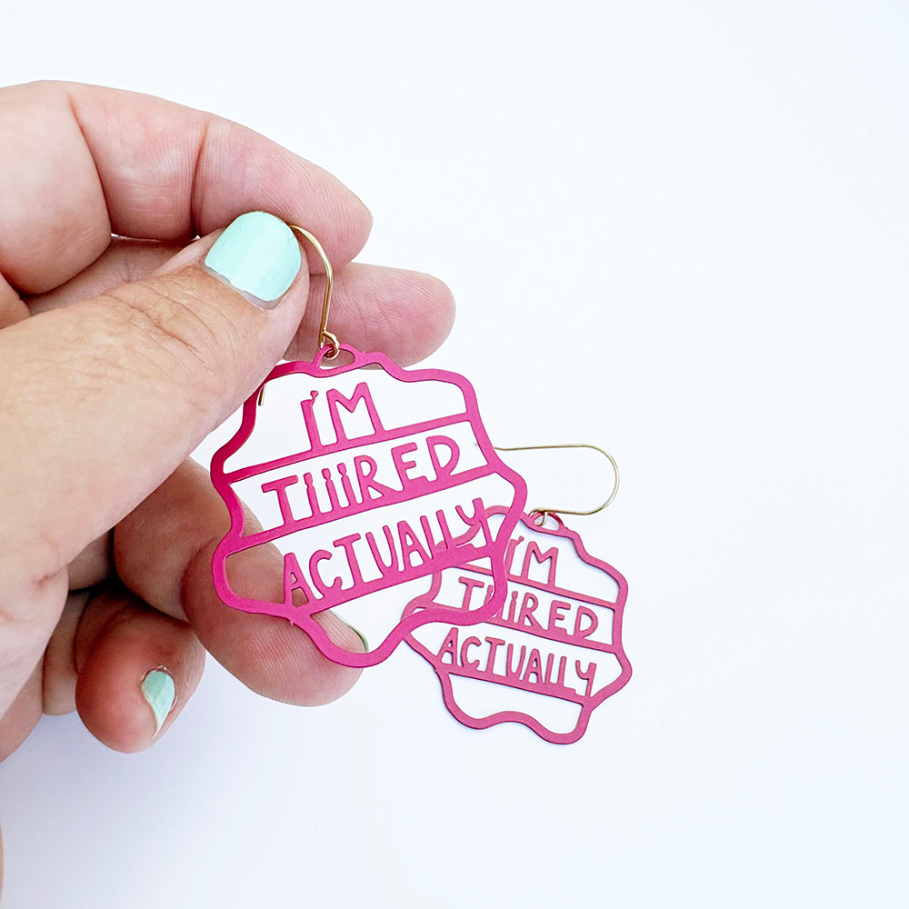 Midi I'm Tiiired Actually earrings in Hot Pink