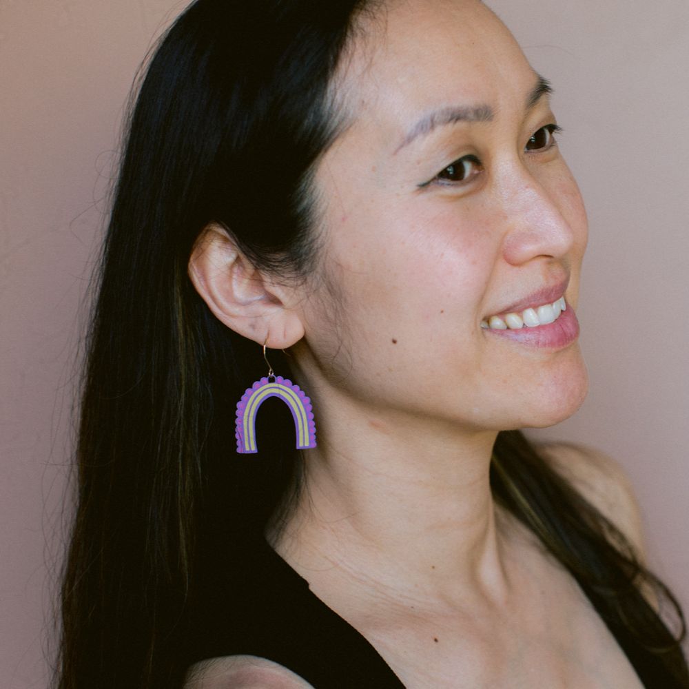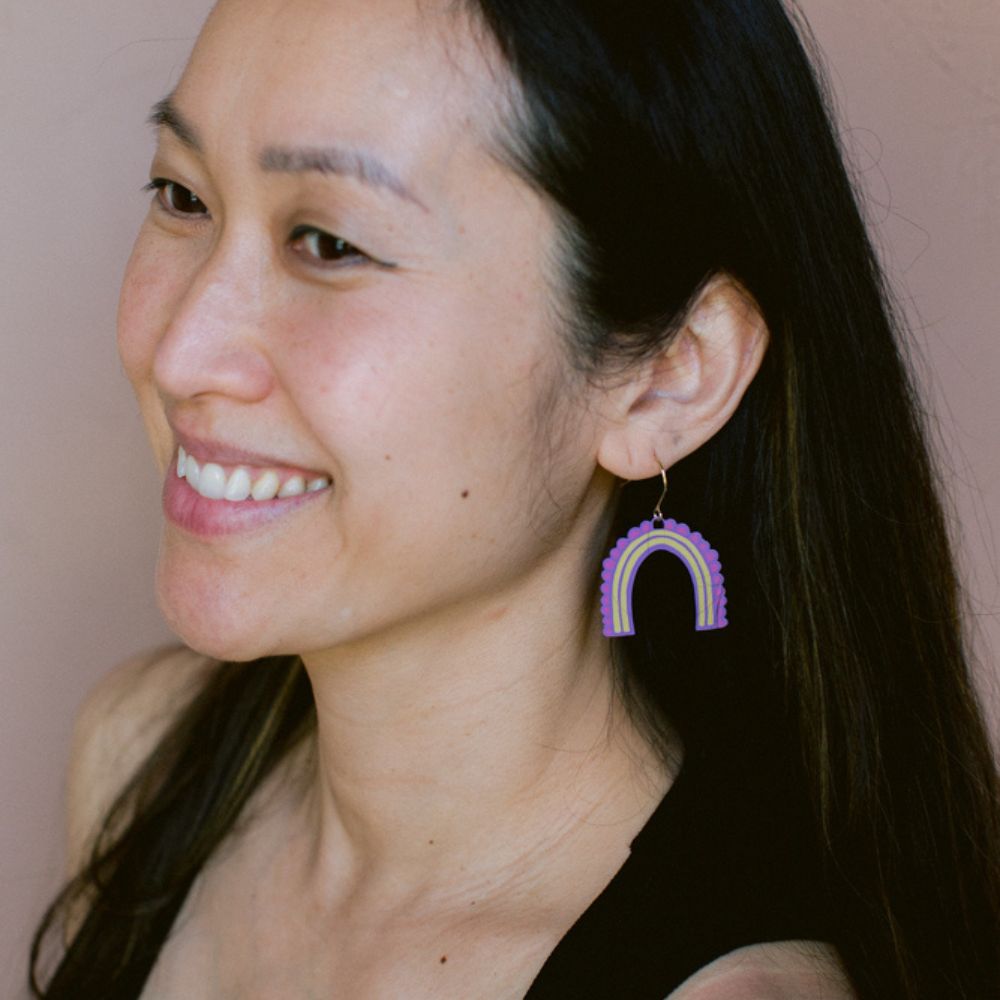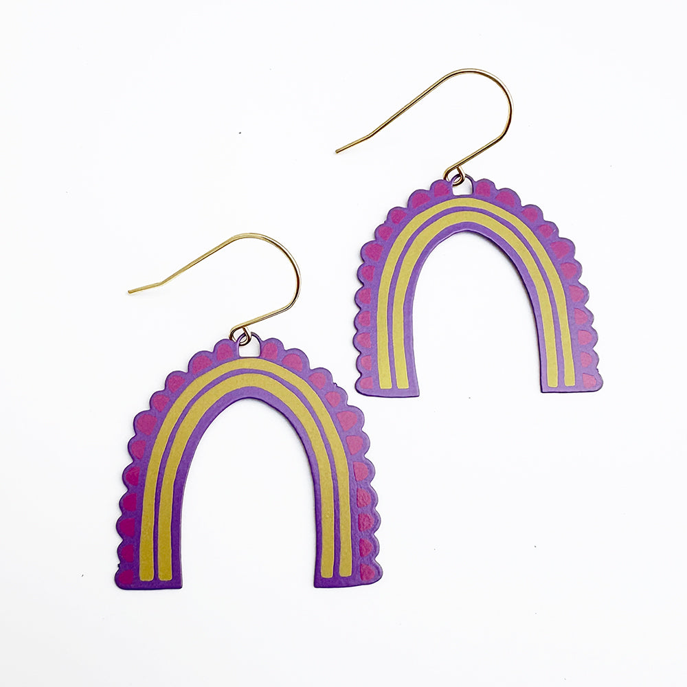 Playful, modern, and full of springtime energy, our Midi Spring Shape Earrings #3 bring colour-blocked fun to your accessory game. This hand-drawn abstract design combines purple, pink, and yellow into a perfectly balanced statement piece. Lightweight and easy to wear, they’re crafted from super thin recycled stainless steel with hypoallergenic hooks, making them as comfy as they are eye-catching.