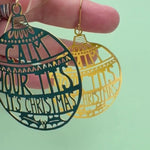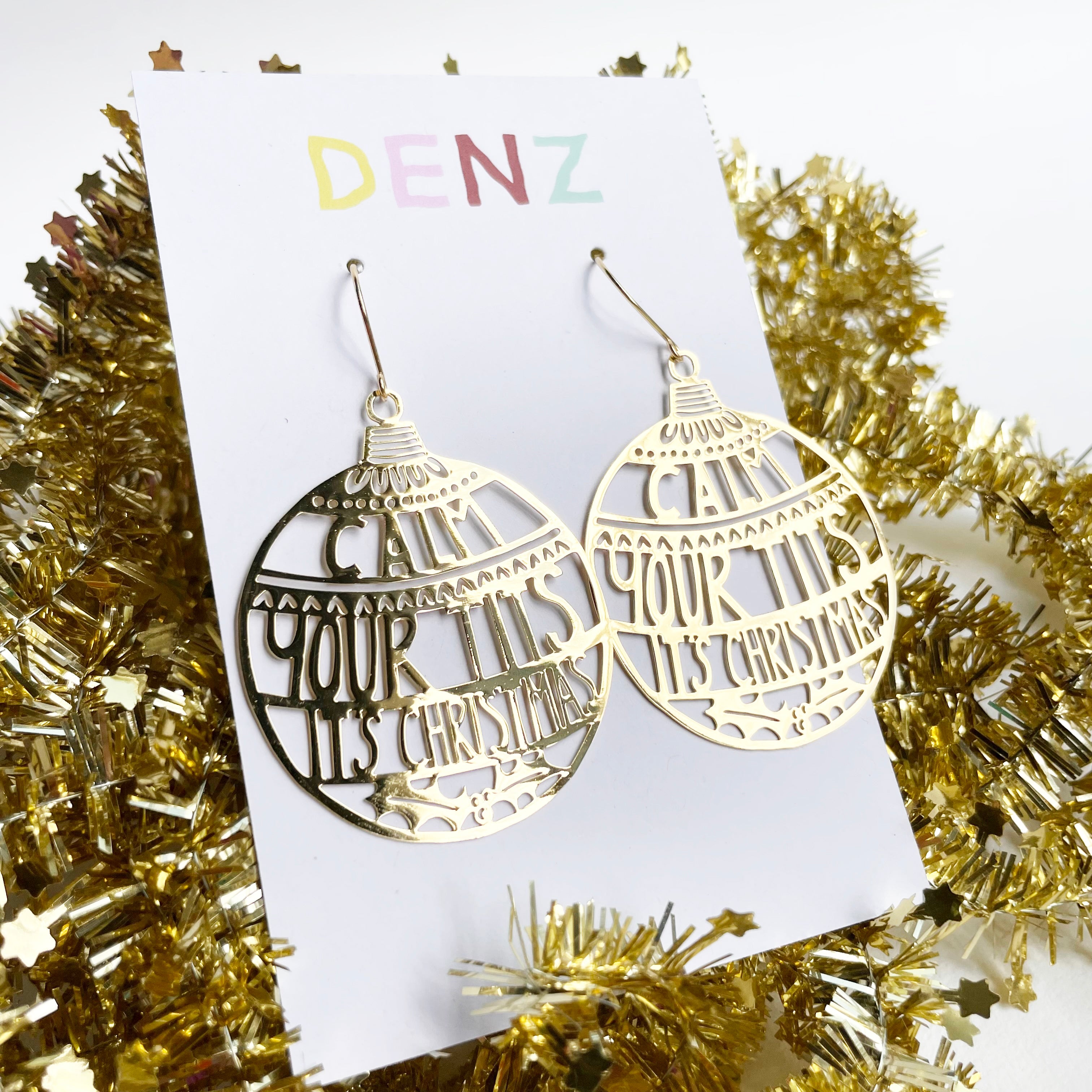 Bold, festive, and just the right amount of cheeky, our Calm Your Tits, It’s Christmas Earrings bring the laughs to holiday season styling. Designed as gold baubles with cut-out lettering, they’re the perfect tongue-in-cheek accessory for those who like their Christmas cheer with a side of sass.
