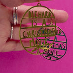 Festive, funny, and unapologetically bold, our Die Hard Is a Christmas Movie Earrings let you wear your opinion loud and proud. Designed in our signature cut-out text style, these oval-shaped earrings in gold are a cheeky nod to one of the season’s most heated debates. Lightweight and eye-catching, they’re the perfect conversation starter for holiday gatherings.