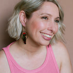 All of our earrings are topped off with stainless steel (silver) or ion-plated stainless steel (black, gold, rose gold) hooks, so they're hypo-allergenic. Meaning, if you've got sensitive lobes our earrings are perfect for you
