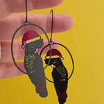 Festive, bold, and uniquely Australian, our Christmas Red Tailed Cockatoo Earrings bring a seasonal spin to one of our most iconic birds. Each hoop features a hand-drawn Red Tailed Black Cockatoo perched proudly, complete with fiery red and yellow feather detailing and topped with a cheeky Santa hat. Crafted from super thin recycled stainless steel, these earrings are feather-light, hypoallergenic, and perfect for adding an Australiana edge to your holiday look.