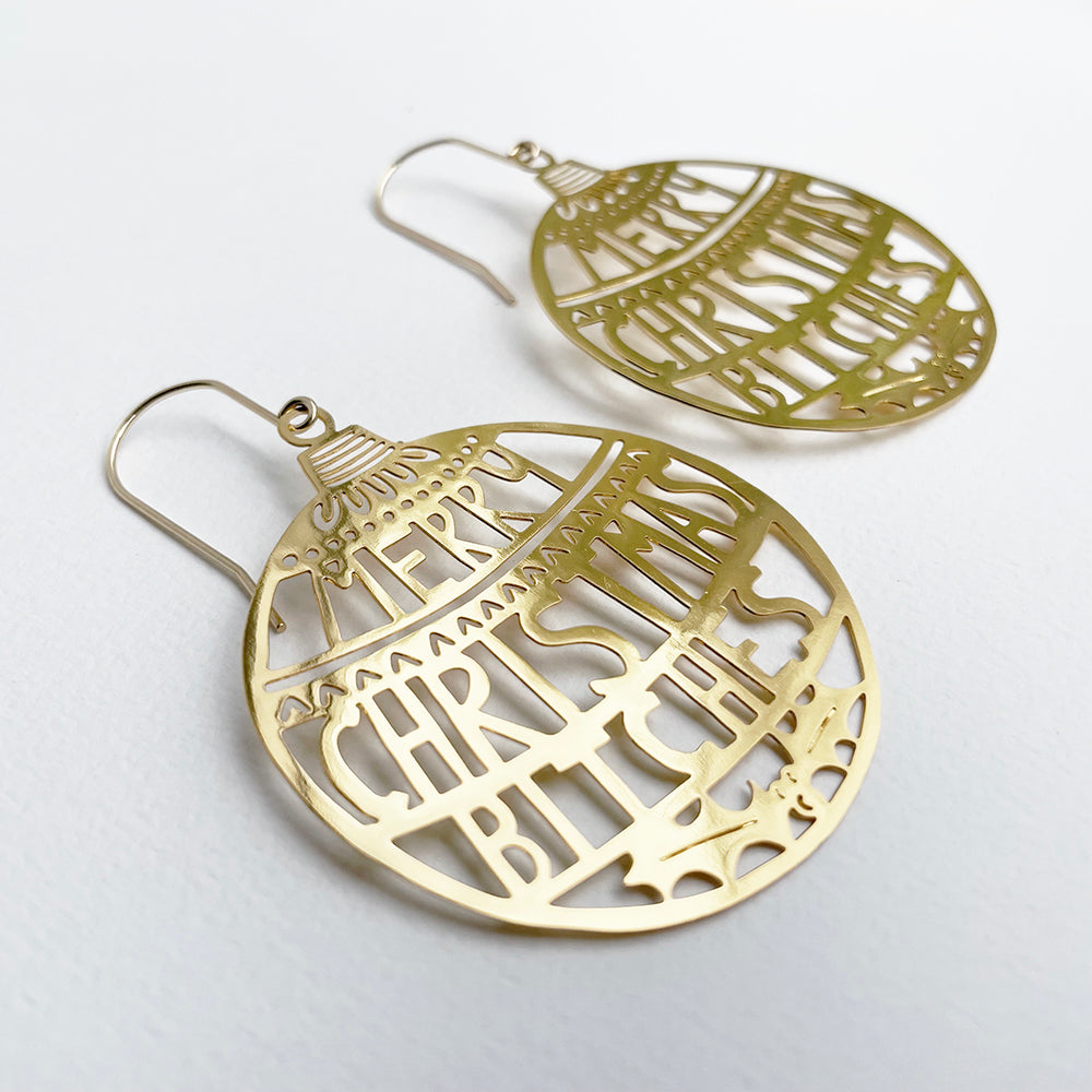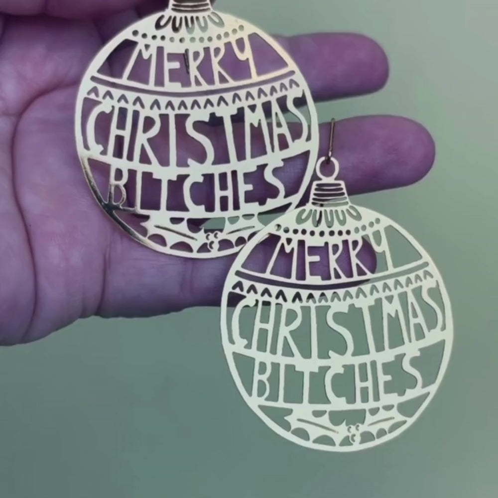 Merry Christmas Bitches earrings in Gold