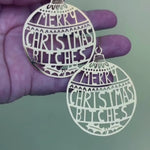 Playful, cheeky, and unapologetically festive, our Merry Christmas Bitches Earrings bring a whole new attitude to holiday accessories. Designed as classic baubles with a bold cut-out greeting, these gold-toned statement earrings are perfect for anyone who loves a laugh with their Christmas cheer.