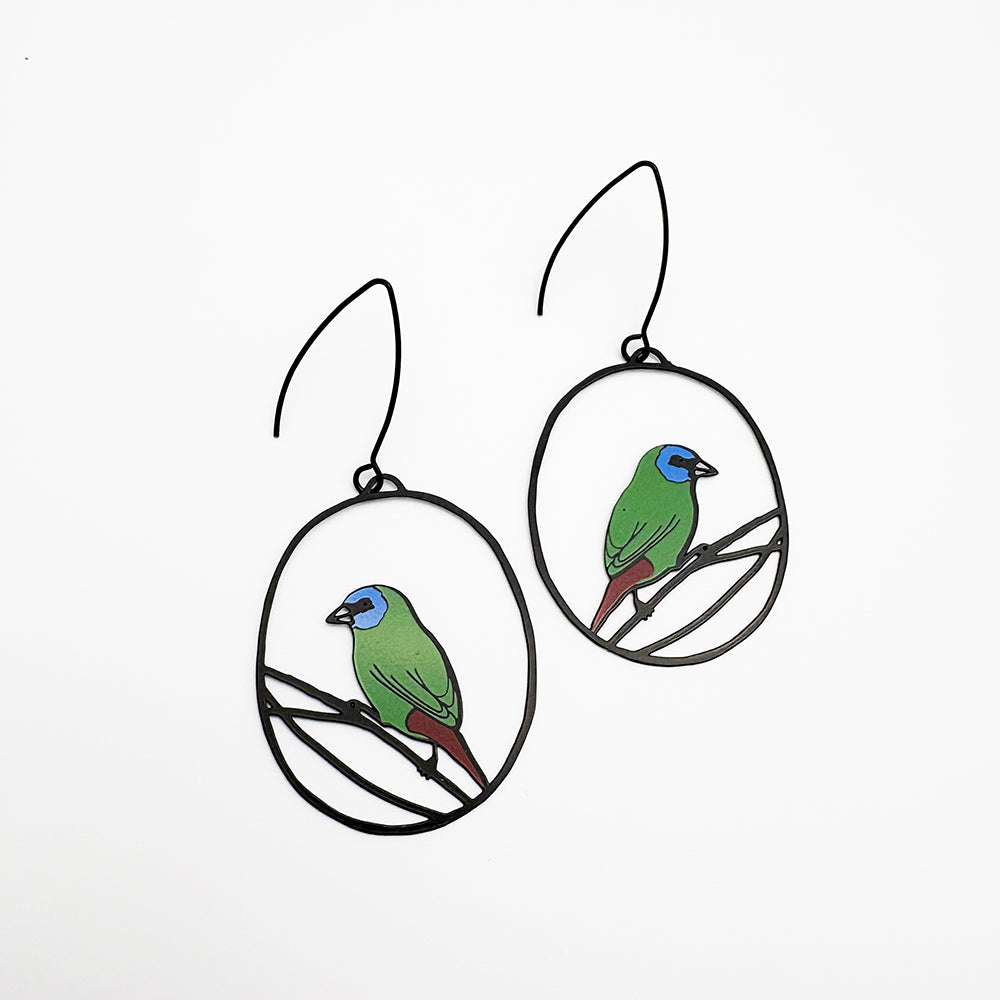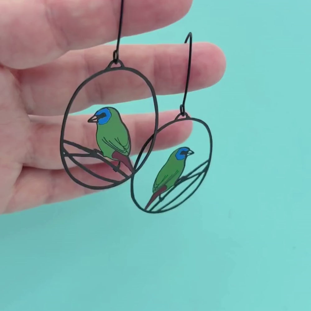 Midi Blue-Faced Parrotfinch earrings in Black/Blue/Green/Red