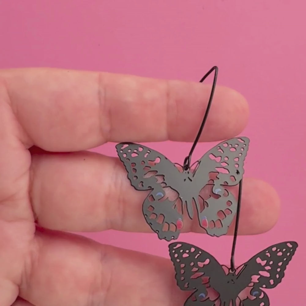Delicate, detailed and beautifully bold, our Midi Butterfly Earrings in Chequered Swallowtail honour one of Australia’s most striking butterfly species. Featuring a hand-drawn Chequered Swallowtail with intricate wing cutouts and subtle touches of blue and red, these earrings capture the elegance and patterning that make this butterfly so distinctive. Made from super thin recycled stainless steel, they’re ultra-lightweight, hypoallergenic and effortlessly wearable.
