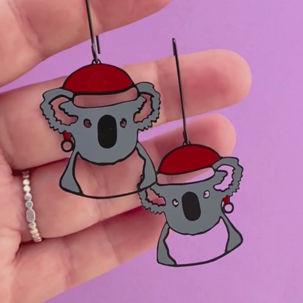 Midi Christmas Koala earrings in Black/Grey/Red
