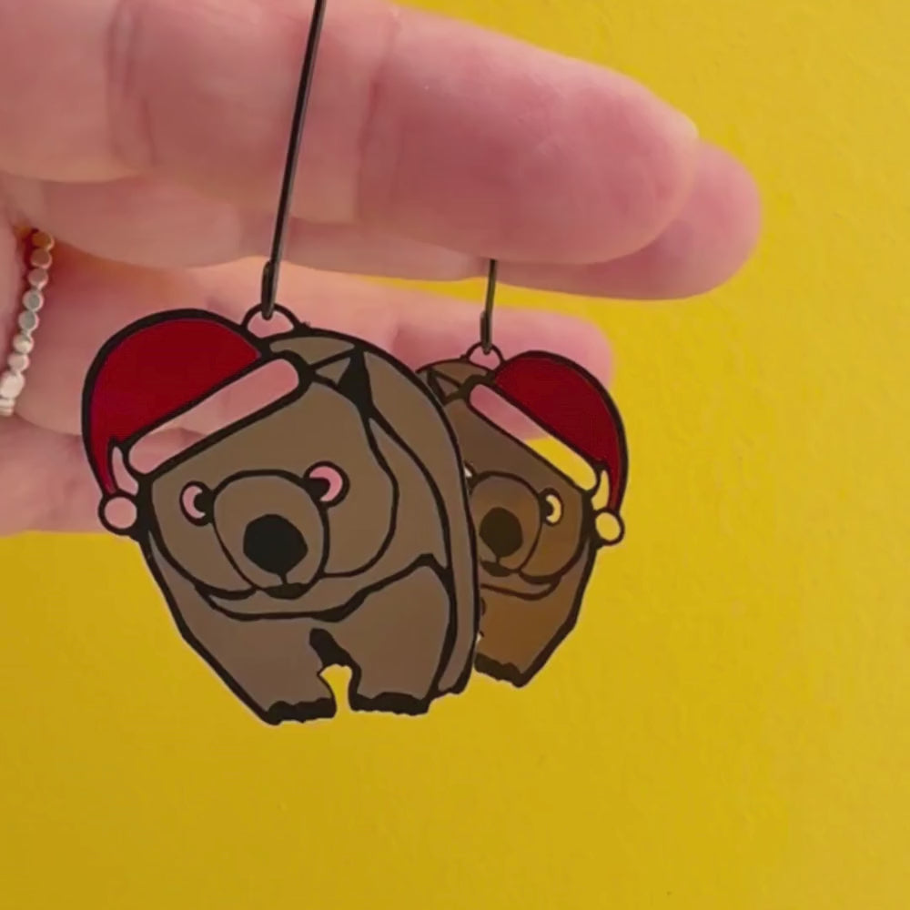 Midi Christmas Wombat earrings in Black/Brown/Red