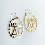 Playful, sparkly, and unapologetically festive, our Midi Festive AF Earrings are here to take your holiday looks to the next level. With an oval shape edged in tiny star cut-outs and bold cut-out text across the centre, they even give the “A” a cheeky twist by turning it into a Christmas tree. Equal parts sass and sparkle, they’re a Christmas must-have.