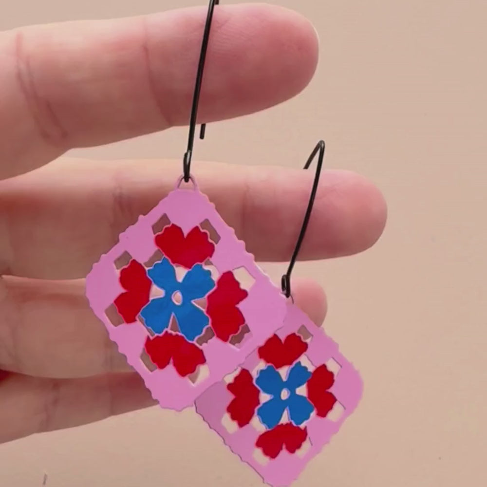 Cosy, colourful, and full of nostalgia, our Midi Granny Square Earrings in Pink, Red & Blue are a playful tribute to handmade craft and feel-good memories. Featuring a hand-drawn crocheted granny square design with three rows of contrasting “stitches,” this pair brings texture and warmth to your look without the weight. Crafted from super thin recycled stainless steel, they’re lightweight, hypoallergenic, and made for everyday wear with a creative twist.