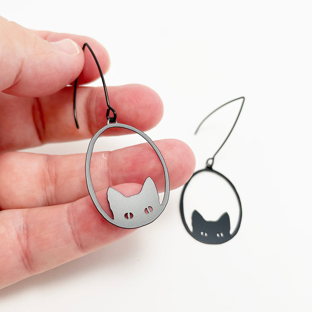 Style Tips: Great for cat lovers, minimalists, or anyone who enjoys a little playful detail in their accessories. These earrings are subtle enough for the office, but still make a statement when someone catches that little cat peeking out.
